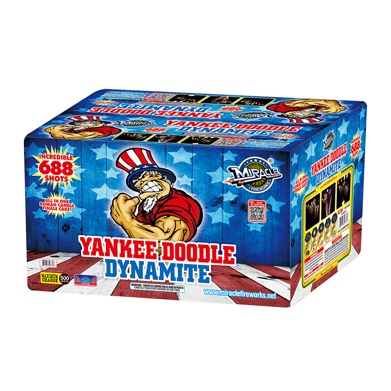 DESCRIPTION: Over the top, all in one 500g roman candle zipper cake for your backyard show. Brocade crown tail to chry.with blue/silver twister/whistling/red and green with silver spike flower. Visual delight!