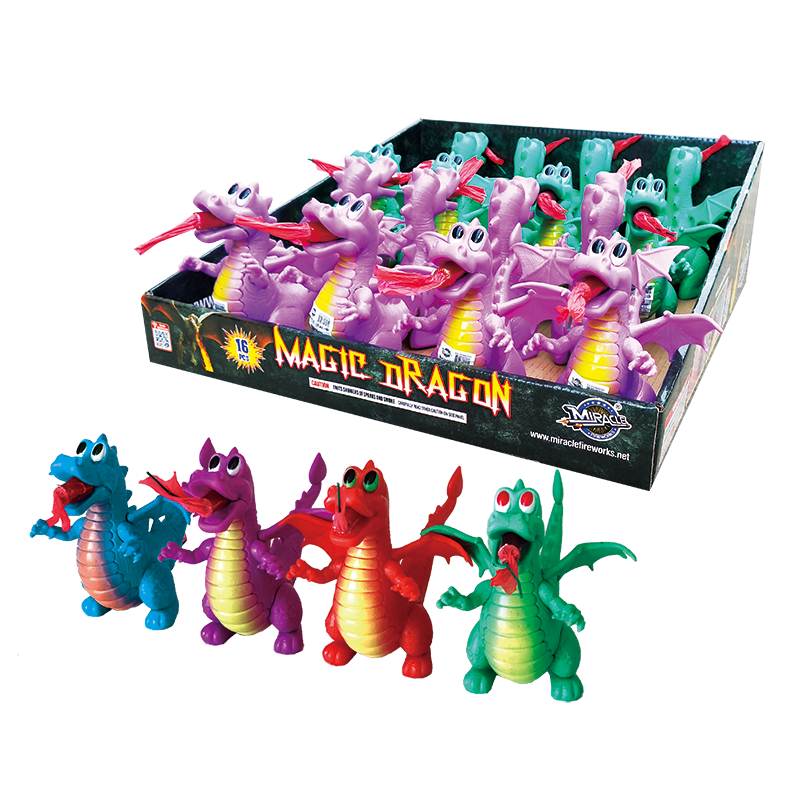 DESCRIPTION: High quality plastic Magic Dragon for your kids! Effects of dragon fire from its mouth, red spring, blue smoke, crackle with red and green color.